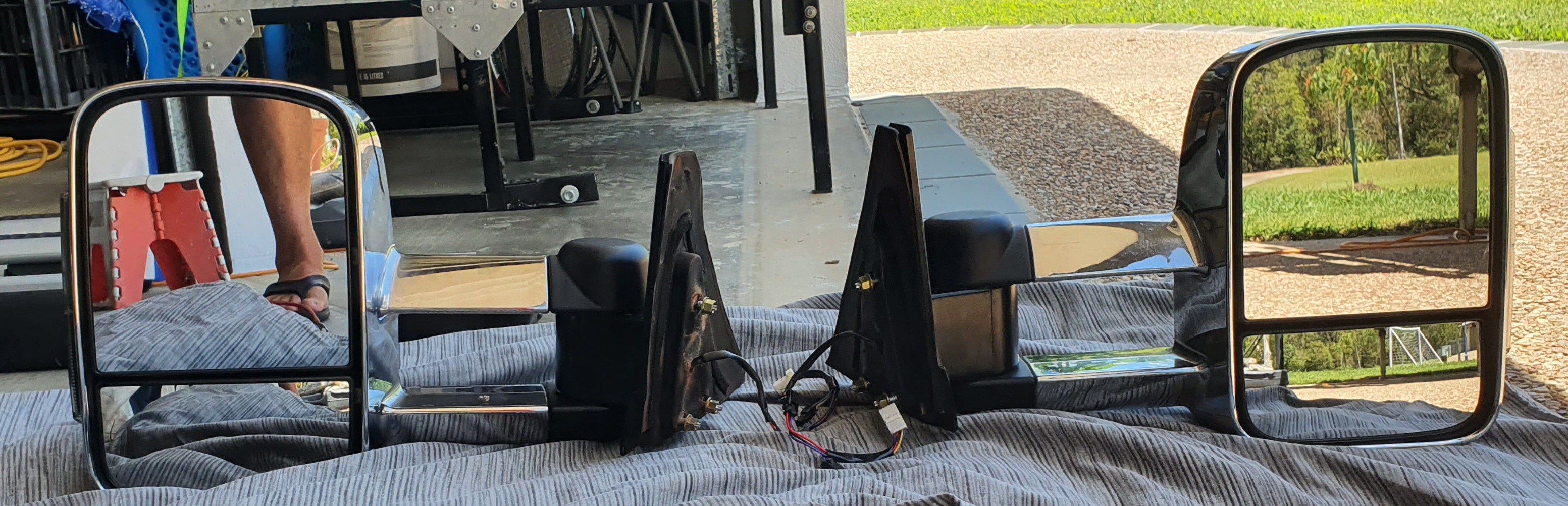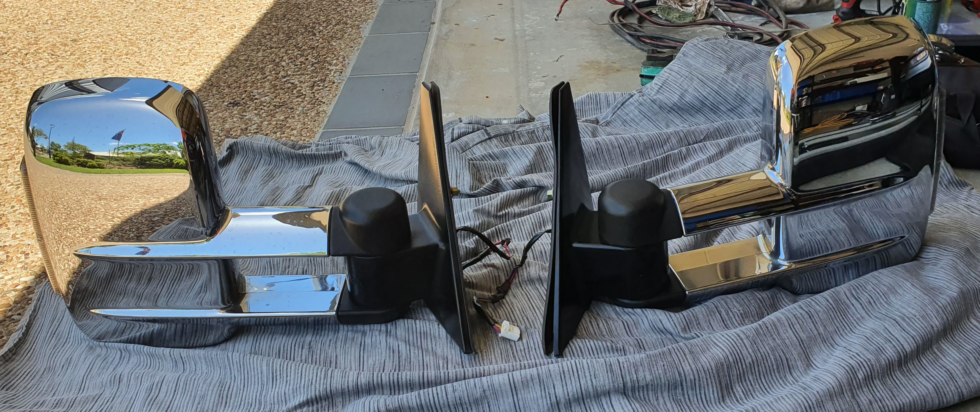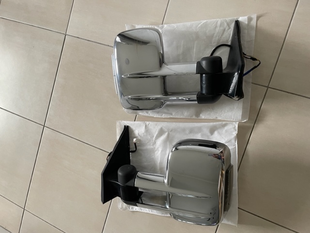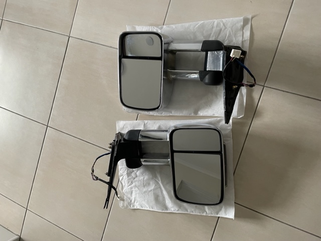 These are later model mirrors with optional, removable wiring harness to enable earlier (NM- NP) models to fit. Minor stone marks hardly noticeable. All electrics function correctly. Will post at buyers expense (approx 15kg) or can deliver to Perth.