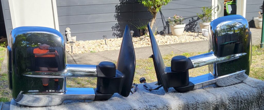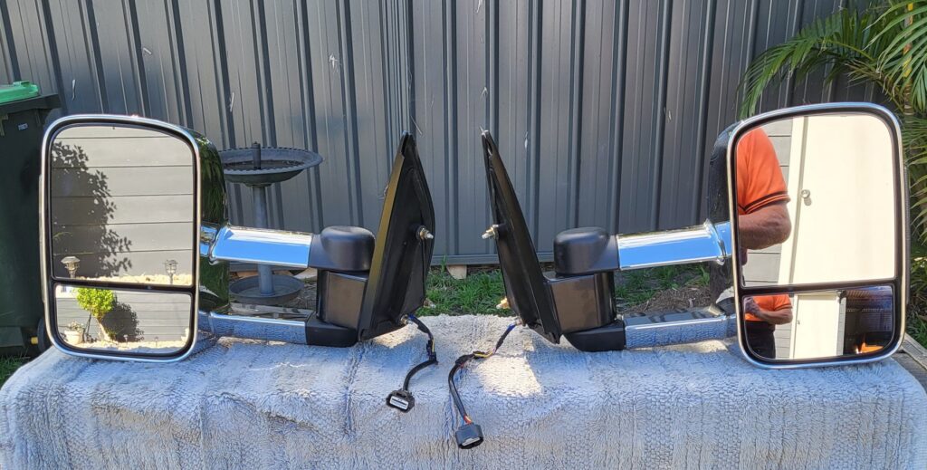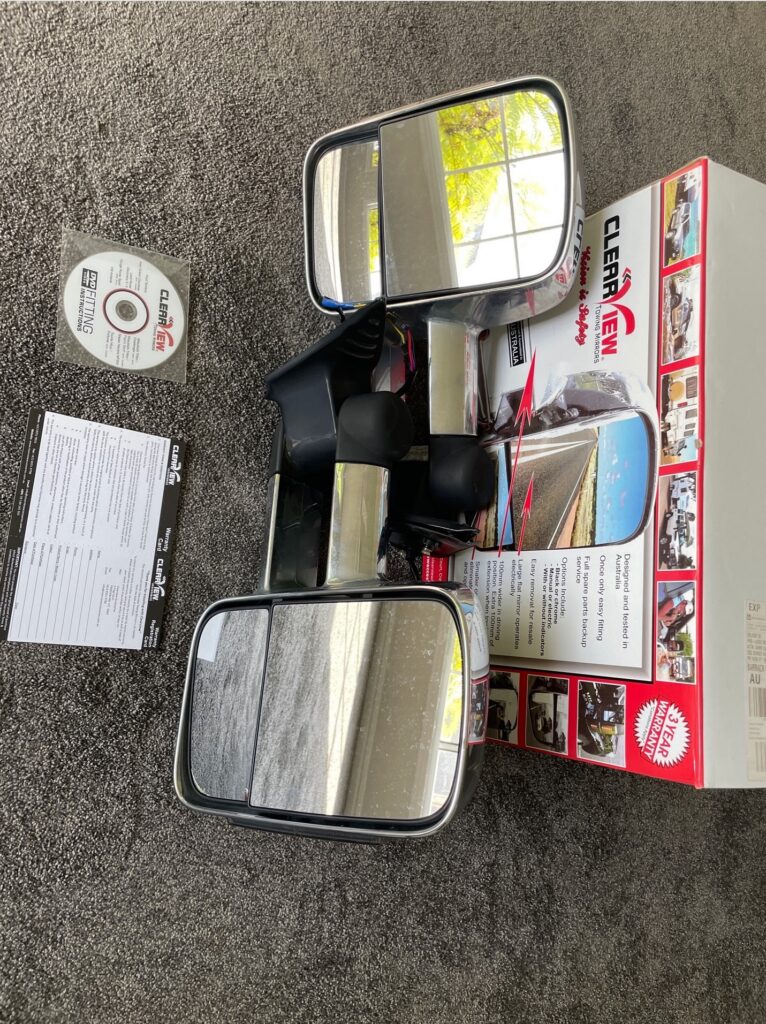1 pair of Clearview towing mirrors for a Mitsubishi Triton and Mitsubishi pajero sports 2015 to current electric with indicators in good condition pick up only or post at buyers expense