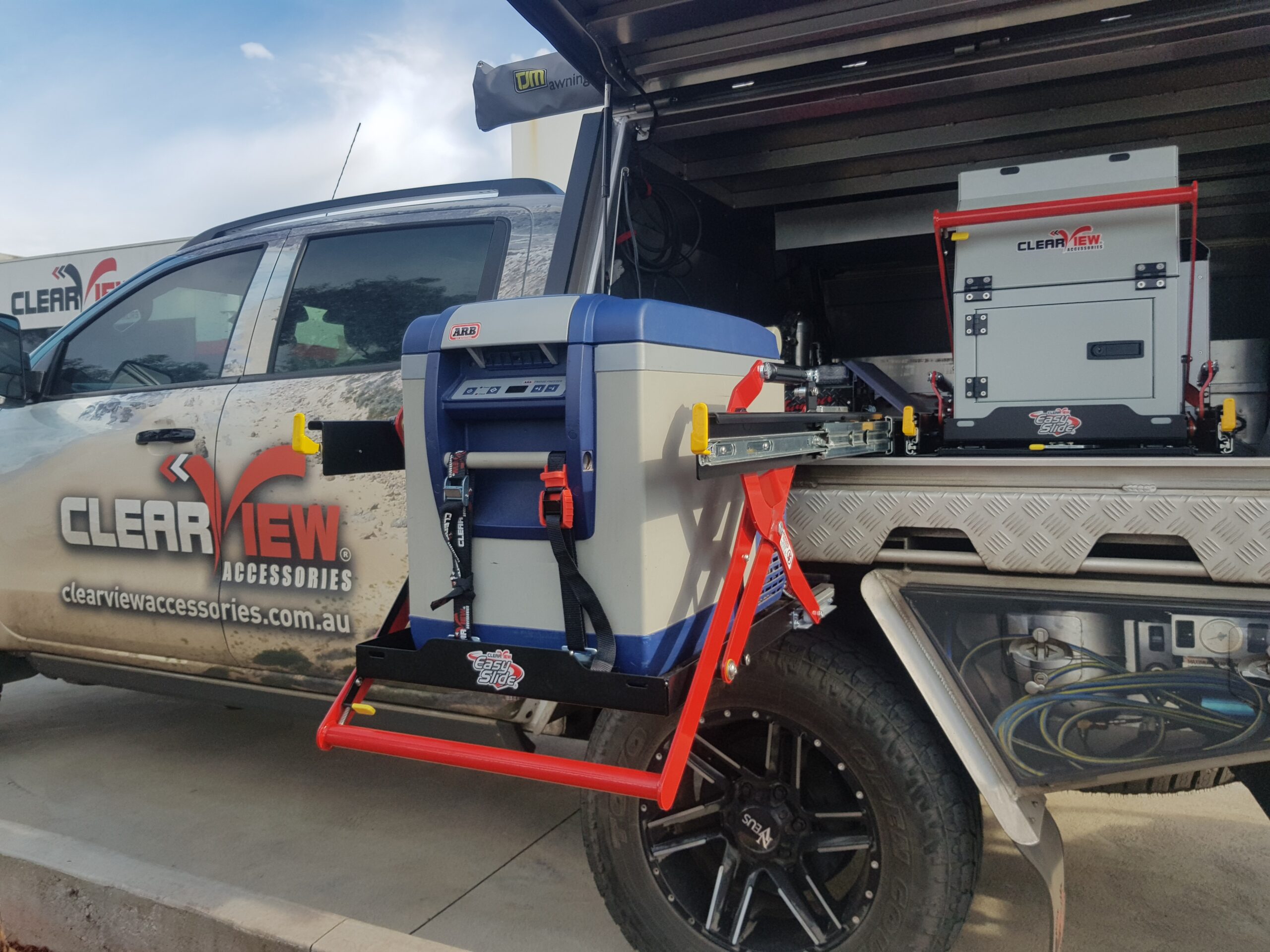 The Clearview Easy Slide is an ADR and OHS compliant quality-designed product that can be easily installed in your vehicle, so you have easy access to cold food and drinks no matter where you’re going. This state-of-the-art fridge lowering slide is easy to use and access from the back of your vehicle or from within your canopy.