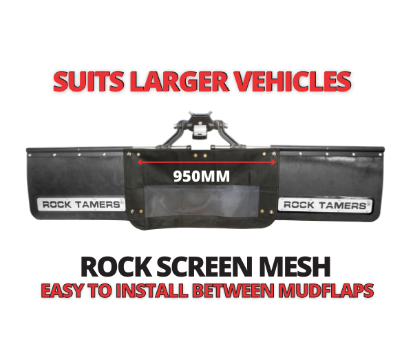 Rock Tamers Rock Screen attaches between the two Rock Tamers flaps and eliminates damage from stones, gravel, small debris, tar, etc. while traveling.